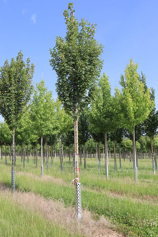 Kleiner bis mittelgroßer Baum; 5-8 m hoch, 3-5 m breit; sehr kompakter, regelmäßiger, aufrechter Wuchs mit stehenden Ästen; starkes Jugendwachstum