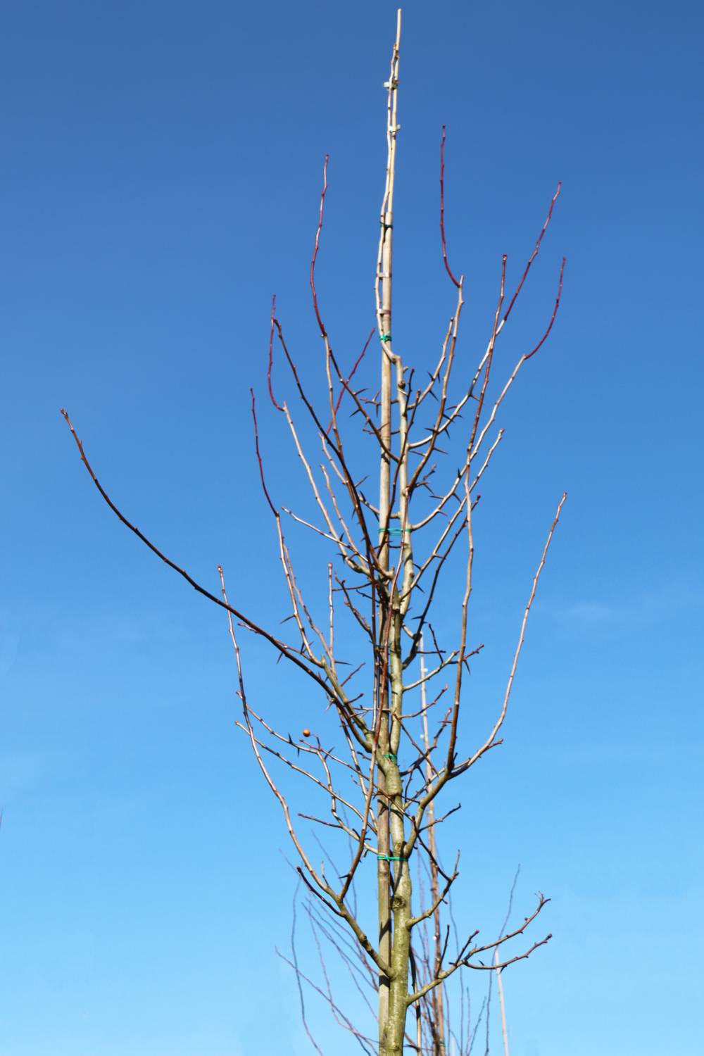 Kleinbaum; 5-8 m hoch, 3-5 m breit; anfangs straff aufrecht bis schmal eiförmig, später unregelmäßig ausladend; starkwüchsig; mit bis zu 5 cm langen Dornen - Krone: Rund, dicht