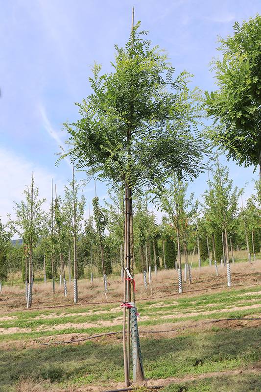 Mittelgroßer Baum; 15-20 m hoch, 12-15 m breit; Hauptäste unregelmäßig schräg aufsteigend, sehr lockerer Wuchs; erst schwachwüchsig, später mittel- bis starkwüchsig - Krone: rund, hochgewölbt, schirmförmig