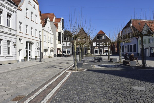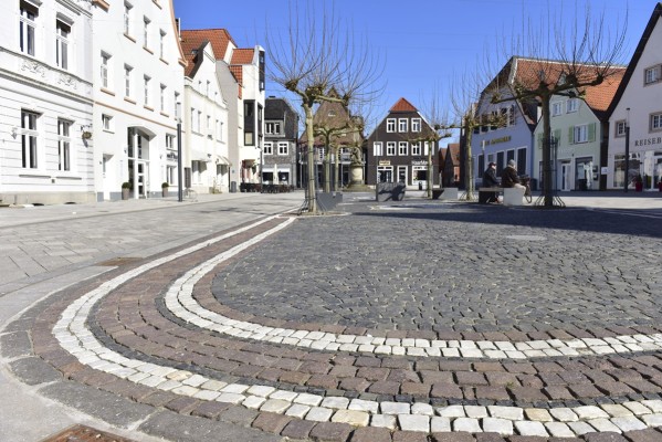 Ahlen, einstige Zechenstadt zwischen Münsterland und Ruhrgebiet, hat ein städtebauliches Kleinod in seinem Zentrum: der Marktplatz. Umgeben von einer eindrucksvollen Kulisse aus Gebäuden unterschiedlicher Epochen, erscheint er nach den Planungen des Büros wbp aus Bochum in einem neuen Kleid. Alt und neu verschmelzen auch im Freiraum. Ein historisches Denkmal blieb an der Ost-, ein modernes Fontänenfeld kam auf die Westseite, ein modernes Dach aus geschnittenen Platanen steht in einem nach alten Vorlagen restaurierten Pflasterteppich. Das neue Stadtmobiliar ist zeitlos schlicht, der niveaugleiche Ausbau schafft einen großzügigen Eindruck.